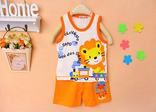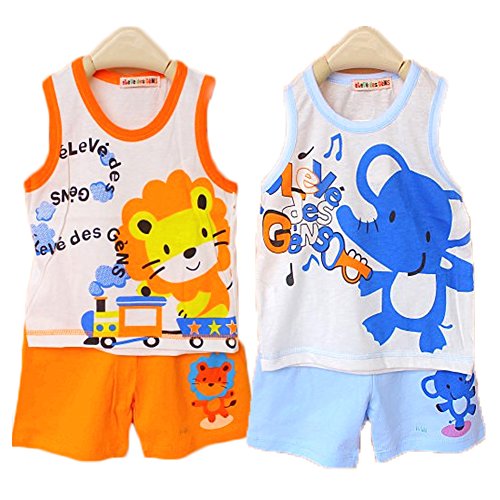 ハイキングフライ(Hikfly) 二組 ベビー服男の子女の子 赤ちゃん柔らかい綿ツーピースノースリーブ袖无しTシャツ ベスト&ショートパンツ セット(動物) (12-18ヶ月, 男の子)