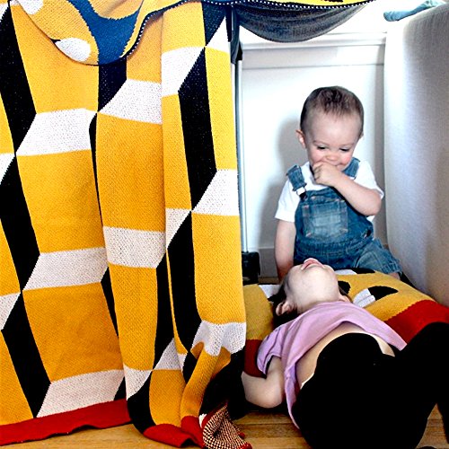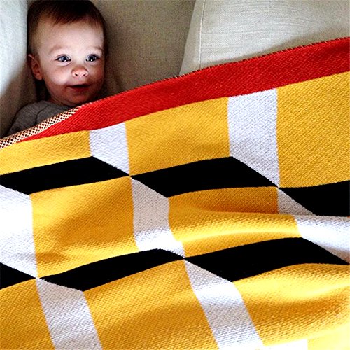 hiltowコットンニットベビーカー保育園子供ベビー毛布、ブランケット、マジックキューブグリッド設計、43 x 33 cm