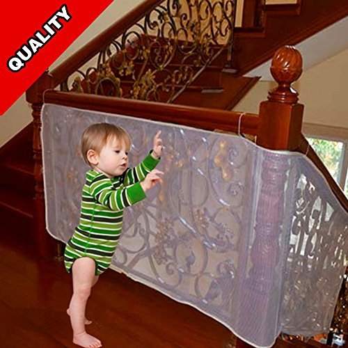 Size: 118 (L) * 29 (W) inch;Suitable for family blancy or stairs.;made of heavy-grade fabric, for a strong hold and neat look,Weatherproof material.;Mesh net adjustable to fit most railings,stairs and balconies.Durable mesh net good for outdoor and indoor.;Usage: the plastic locking bar through the net holes, tied to the balcony, Note that please fasten after the net taut.;Effect: can effectively prevent children toys, shoes, debris from the air joints balcony or thrown down stairs, provide good security.