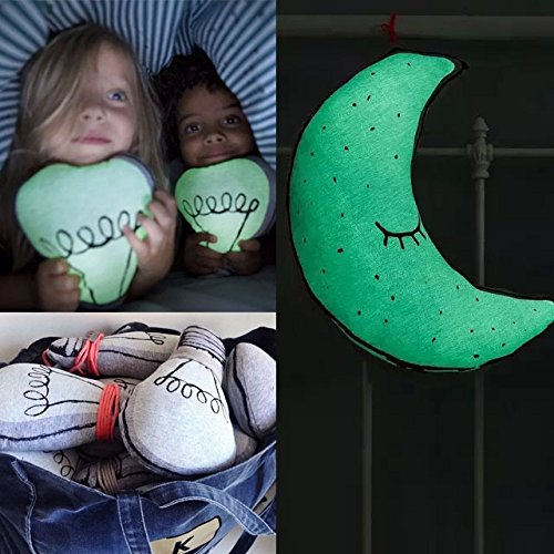 hiltow Lovely Glowing Moonクッション枕光ソファクッションスーパーソフト安全コットンMadeガールフレンド誕生日ギフト子供用ナイトライト枕クリスマスPresents (月)