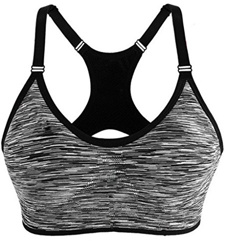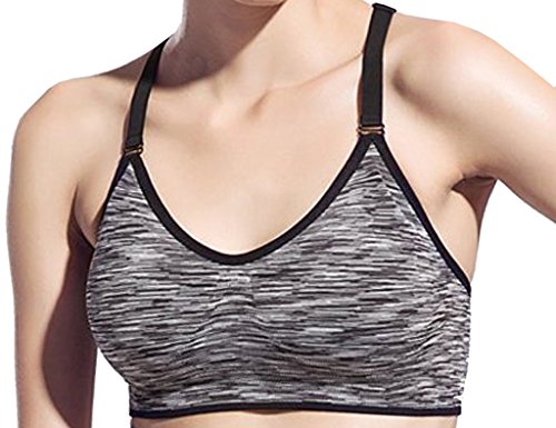 Hioffer(ハイオフア)スポーツブラ ノンワイヤー ブラジャー フィットネスブラ カップ付き ランニング インナー 速乾吸汗 ヨガウェア グレー