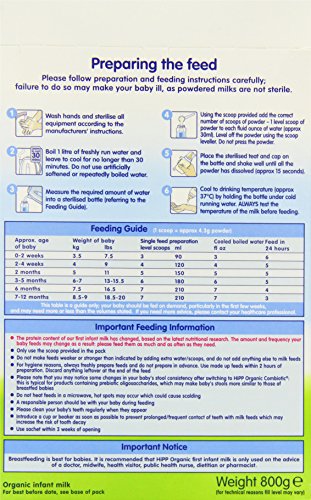 Hipp Organic First Infant Milk Powder from Birth Onwards Stage 1 (800g) 誕生からヒップ有機最初の乳児用粉ミルク以降のステージ1 ( 800グラム)