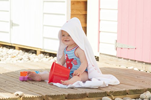 The Hippychick Turkish Baby Bath Towel is luxurious, stylish, warm, fast drying and highly absorbent and made from pure woven cotton and inspired by the centuries old traditional ‘Turkish Hammam’. Really soft and cosy, these baby towels are lightweight and very versatile, and can be used for swimming, bath-time and for keeping little ones cosy on the beach. Highly durable and soft to the touch towels, they come in two fresh and classic colours: red/white stripe and blue/white stripe - striped on the outside and towelling on the inside. The towel with hood measures 82 x 82cm, ensuring plenty of material to wrap your baby up in. It has a cotton banded hood and embroidered Hippychick logo.