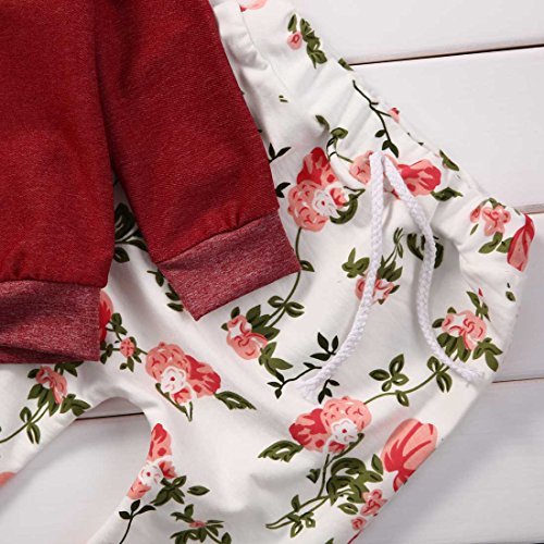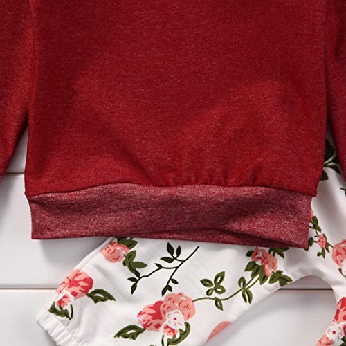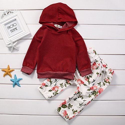 子供服 キッズ服 女の子 フラワー パターンスウェット+レギンス 二点セット (70(0-6月), 赤い)