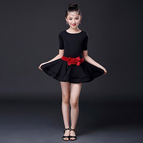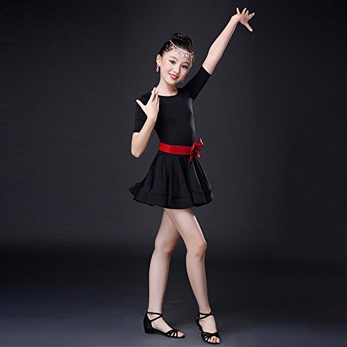 女児 ラテンダンス 練習 演出服 社交ダンス衣装 ラテンダンス衣装 ドレス ベルト レギンス 3点セット (100, ブラック)