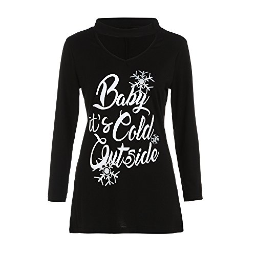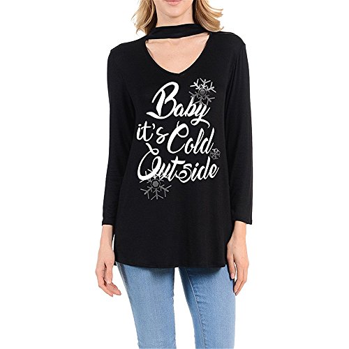 クリスマスコ仮装 Hosam クリスマス コスチューム レディース vネック ロングTシャツ 欧米風 柔らかい 落ち感 クリスマス雰囲気満点 おしゃれ ファッション (L, ブラック)