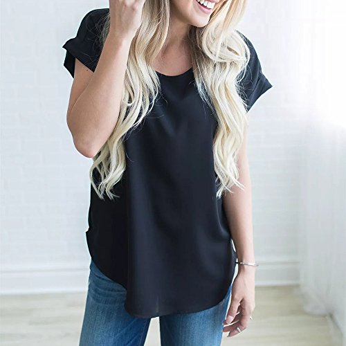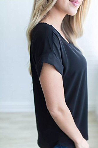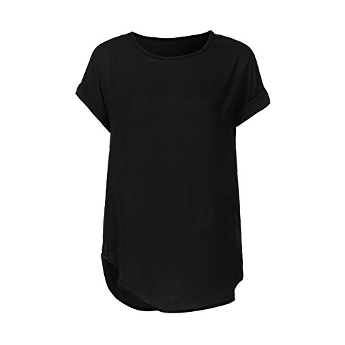Hosam レディース 洋服 トップス 半袖 Tシャツ シフォン 無地 シャツ 爽やか ゆったり 快適 女子 洋服 カジュアル おしゃれ Hosam 夏 ファッション (L, ブラック)