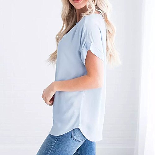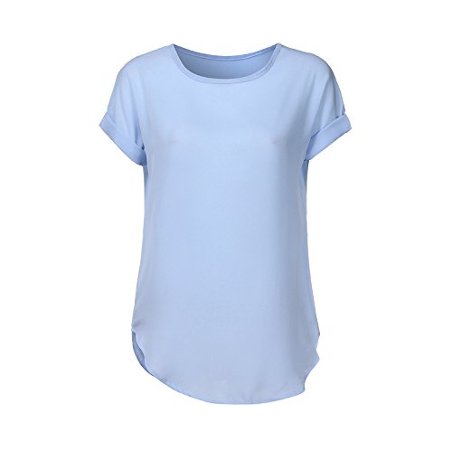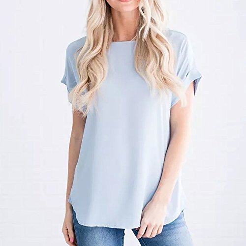 Hosam レディース 洋服 トップス 半袖 Tシャツ シフォン 無地 シャツ 爽やか ゆったり 快適 女子 洋服 カジュアル おしゃれ Hosam 夏 ファッション (L, ブルー)