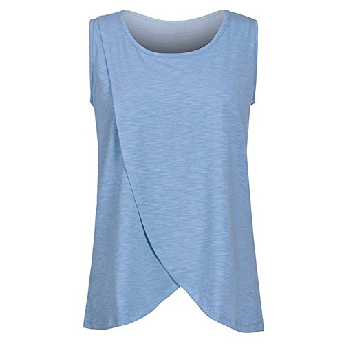 授乳Tシャツ Hosam マタニティウェア Tシャツ 袖なし タンクトップ 春 夏 おしゃれ 無地 授乳 産前 産後 妊婦 (5XL, ブルー)