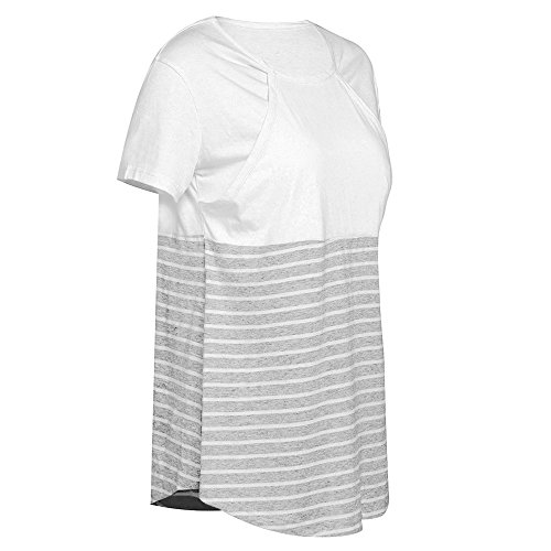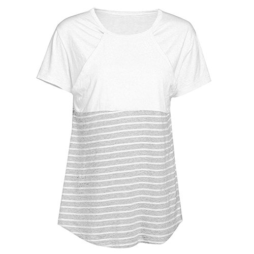 授乳Tシャツ Hosam マタニティウェア Tシャツ 半袖 縞柄 授乳用服 シンプル 春 夏 おしゃれ 授乳 産前 産後 妊婦 日常着 ルームウェア お出かけなどに対応 (S, ホワイト)
