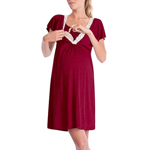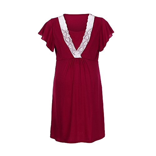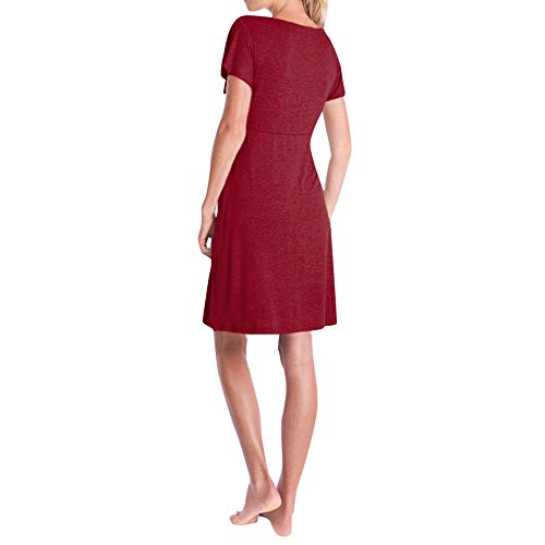 Hosam マタニティウェア 妊娠服 授乳服 ワンピース 半袖 ドレス 快適 無地 レーズ おしゃれ 授乳 産前 産後 妊婦用 授乳用 ルームウェア 入院服 お出かけにも (M, レッド)