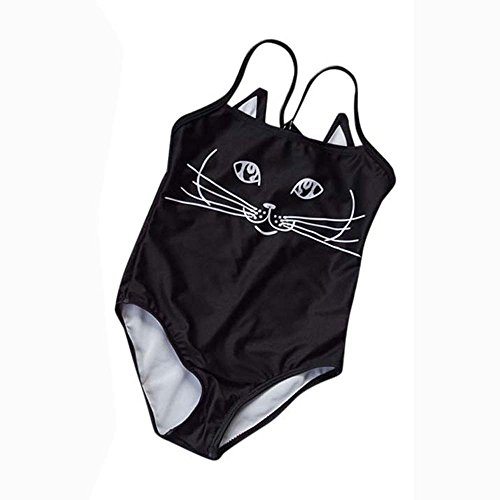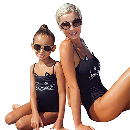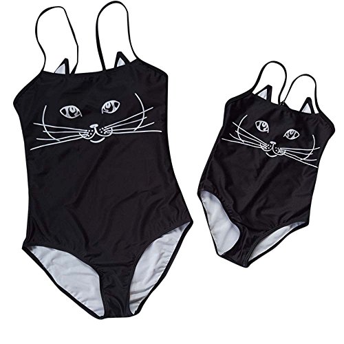 水着 親子服 ワンピース レディース ガルズ 猫顔 おもしろ 水着 海辺 温泉 記念写真 (100, 子供)