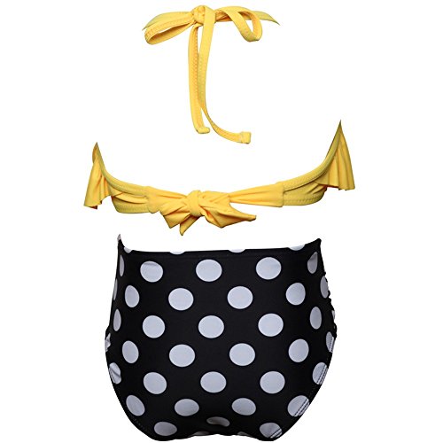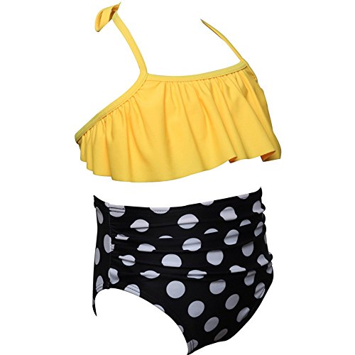 水着 女の子 上下セット 女児水着 フリル 花柄 可愛い 子供 水着 おしゃれ 可愛い 海辺 温泉 記念写真 (104, イエロー水玉)