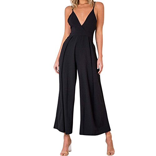 Hosam レディース ジャンプスーツ ワンピース ワイドパンツ 露背係 Aライン お出かけ お呼ばれ 日常着 (S, ブラック)
