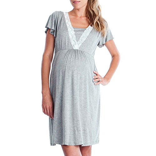 Hosam マタニティウェア 妊娠服 授乳服 ワンピース 半袖 ドレス 快適 無地 レーズ おしゃれ 授乳 産前 産後 妊婦用 授乳用 ルームウェア 入院服 お出かけにも (L, グレー)