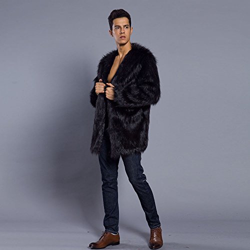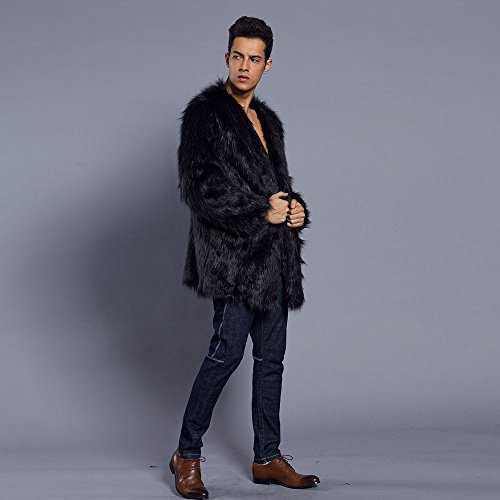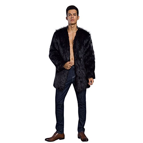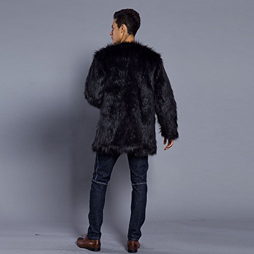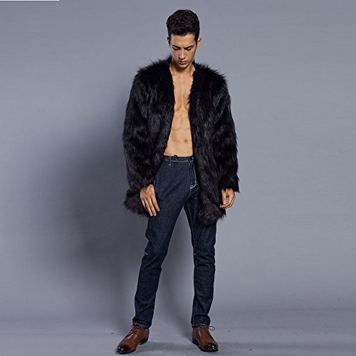 メンズコート Hosam フェイクファー コート 男 暖か 欧米風 おしゃれ 無地 コート S-XXXL 6色を選ばれ モコモコ 服 日常着 パーティー ファッション (ブラック, S)