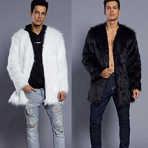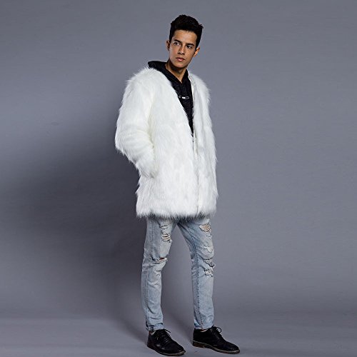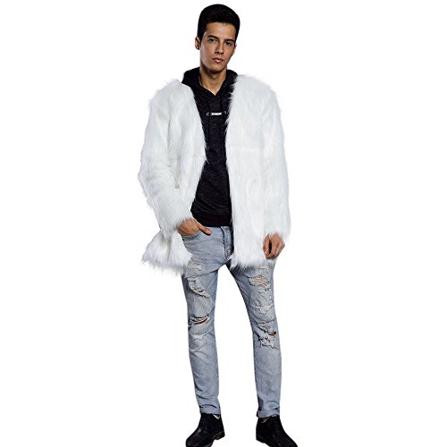 メンズコート Hosam フェイクファー コート 男 暖か 欧米風 おしゃれ 無地 コート S-XXXL 6色を選ばれ モコモコ 服 日常着 パーティー ファッション (ホワイト, L)