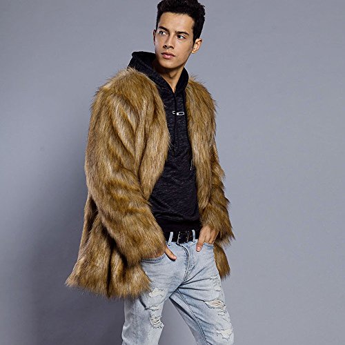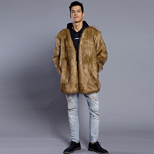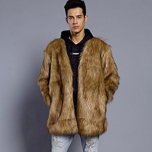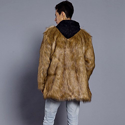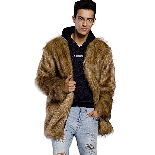 メンズコート Hosam フェイクファー コート 男 ブラウン S-XL 暖か 欧米風 無地 コート 男子 冬着 保温服 日常着 パーティー ファッション (L)