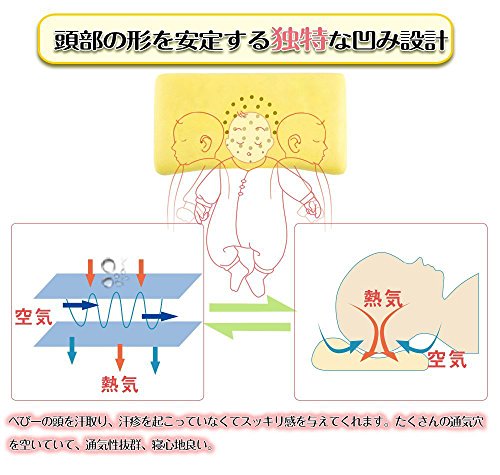 - 寝ている時間が長く、また体温が高い赤ちゃんは、頭の後ろに汗をかくことが多いですね。この枕は汗をサッと吸収してしまうため、赤ちゃんは気持ちよく眠ることができます。