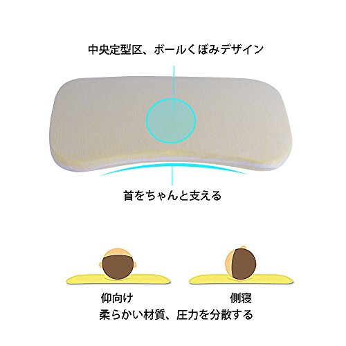 - 赤ちゃんの頭のかたちを良くするお手伝いをする枕です。中身には通気性に優れ、へたりにくく、ホコリも出にくい清潔カバーを採用しました。中央のくぼみのおかげで赤ちゃんの頭が落ちにくいです!