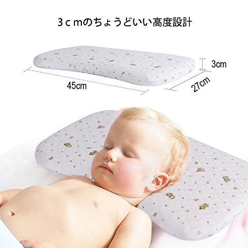 - 寝ている時間が長く、また体温が高い赤ちゃんは、頭の後ろに汗をかくことが多いですね。この枕は汗をサッと吸収してしまうため、赤ちゃんは気持ちよく眠ることができます。