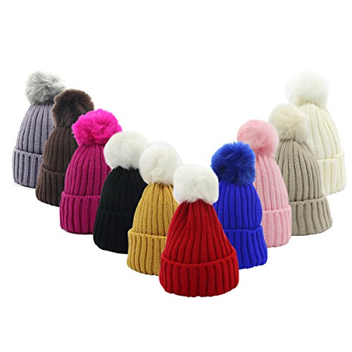 Hollazilla ベビー 可愛い ニット帽子 毛糸 ハット 防寒 冬 毛玉付き