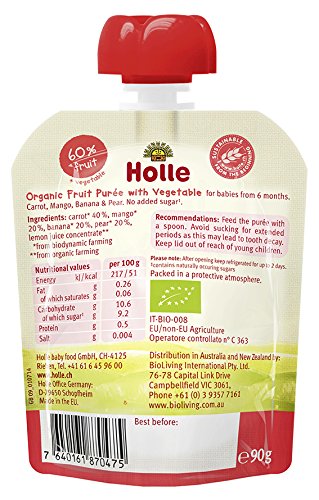 【フルーツピューレ(野菜入り)マンゴ、バナナ、洋ナシ(にんじん入り)】Holle(ホレ)ベビーフード オーガニックパウチ 有機JAS認定 6ヶ月から 90g