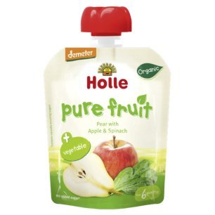 【フルーツピューレ(野菜入り)洋ナシ&りんご(ホウレンソウ入り)】Holle(ホレ)ベビーフード オーガニックパウチ 有機JAS認定 6ヶ月から 90g