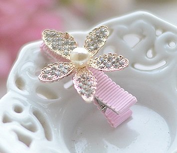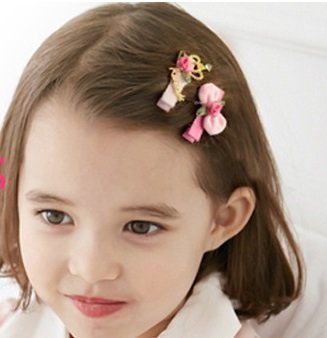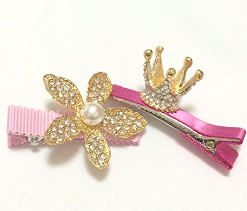 - 可愛いお花やキラキラの王冠などピンクを基調にした女の子のヘアピン2本セットで素敵なコーディネートを♪