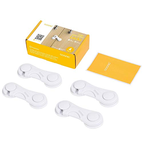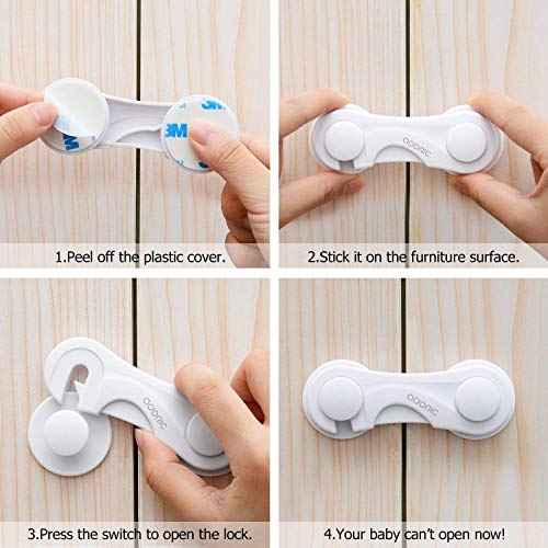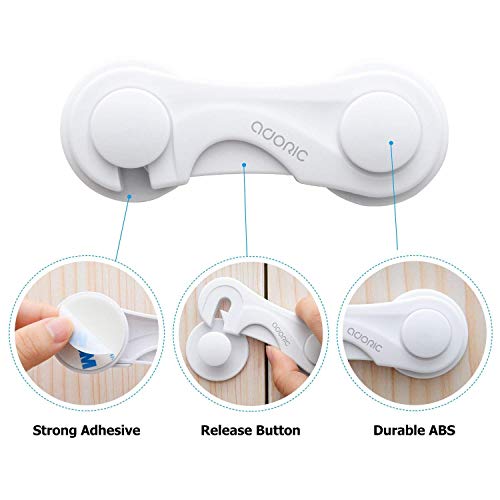 Adoric、強力な粘着ベビー赤ちゃん子Proof、引き出し安全ロック、4パックキャビネットロック安全ロックドアロック安全ロックドアの引き出し、キャビネット、ドリルやツールなし(ホワイト)