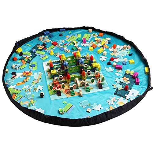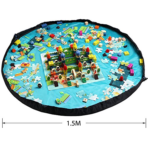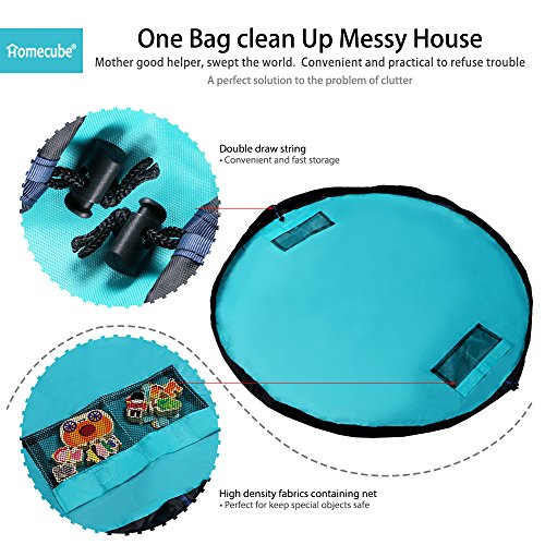 おもちゃ収納バッグ HOMECUBE 直径150cm 子どもプレイマット ブロック片付け レゴ 収納 ドローストリングバッグ 片付けマット 防水シート (水色)