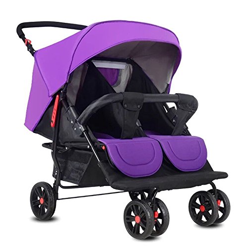 Homehalo 二人乗りベビーカー 可愛いベビーバギー 折りたたみ 軽い2人乗りベビーカー 通気性良い 買い物かご付き 対象 新生児~36ヶ月 (パープル)