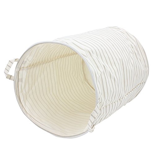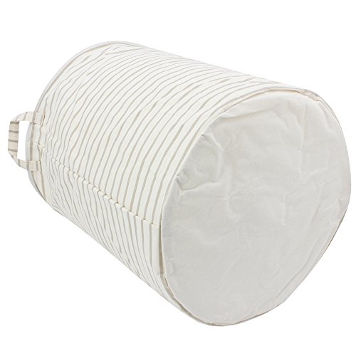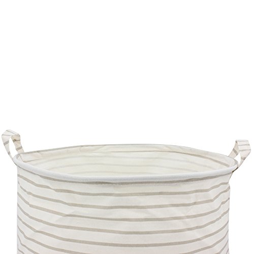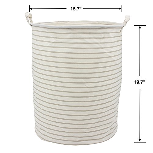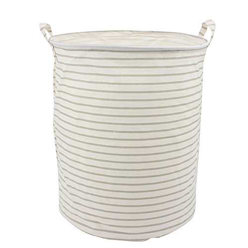 19.7 " Large Laundry Hamperバケット防水コーティングコットンリネンランドリーバスケット折りたたみ可能な洗濯バスケットキャンバスストレージバスケットBinホーム保育園Toy Organizer (グレー&ホワイトストライプ)