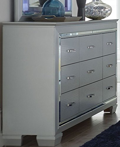 ロン9引き出しドレッサー&ミラーW / LED照明でシルバー