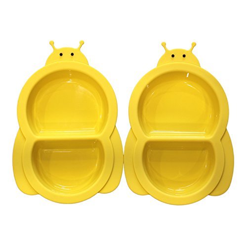 Graduates Divided Plates (2 packs) ??Food Tray for Baby & Toddler ??Microwave Safe ??Reusable Compartment Meal Prep Storage Container (Bee) by Hominize