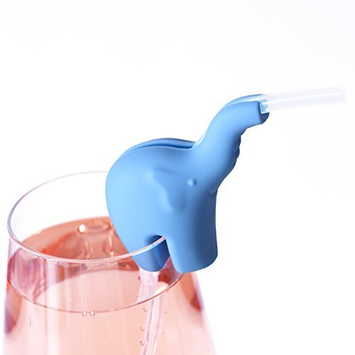 Novel Silicone Drinking Straw Holder (Elephant) ??Dishwasher Safe & Reusable ??Fun Drink Markers for Parties ??Fits Most Cups, Glasses & Mugs ??Soft Straws Included (Set of 2) by Hominize