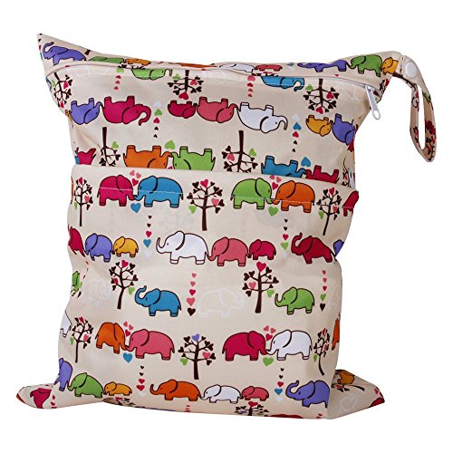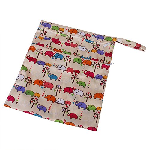 ベビー幼児防水ジッパー再利用可能な布おむつバッグ(マルチアニマル柄ライトブルー) フクロウ/鳥、家、パターン/サル/各種の動物柄 トップジッパー トートスタイルバッグやハングバッグ 防水、ウォッシャブル おむつ、水着&トラベル