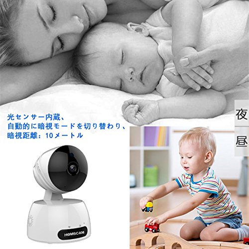 - 【高画質見守りカメラ】Homscamネットワークカメラは720P1/3インチCOMSカメラを搭載し、1280×720高画質を提供可能です。外出先からスマホ、タブレット で簡単に家の状況をクリアに確認できます。また、赤外線LEDライトが6個搭載しており、夜間監視カメラとしても完璧です。