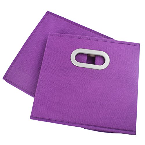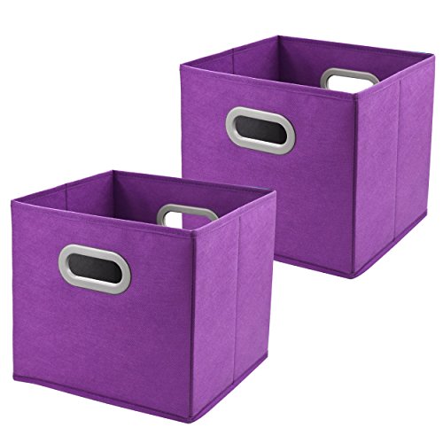 布ストレージビン、homyfort折りたたみ式バスケットキューブオーガナイザーコンテナDrawers withデュアルプラスチックハンドルのクローゼット、寝室、おもちゃ、2パック、パープル パープル