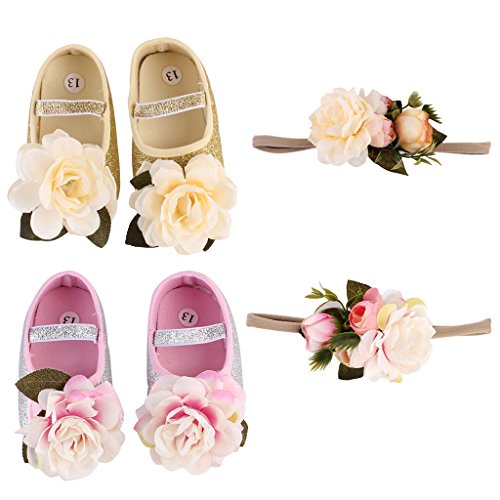 Homyl ベビーシューズ ヘッドバンド ベイビー ガールズ 子供 シューズ バンド プリンセス ドレス 高品質 快適 3サイズ2色選べ - ゴールデン, 11cm