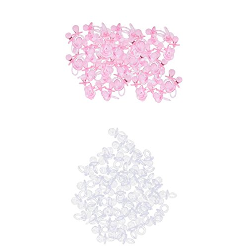 Homyl 約288個 ミニサイズ おしゃぶり チャーム 赤ちゃん ベビーシャワー おもちゃ 玩具 プレゼント ピンク ブルー 2色選べる - ピンククリア