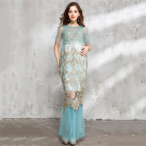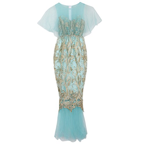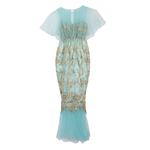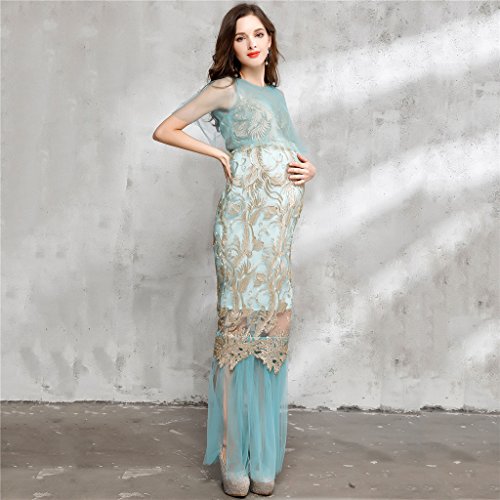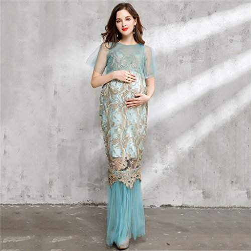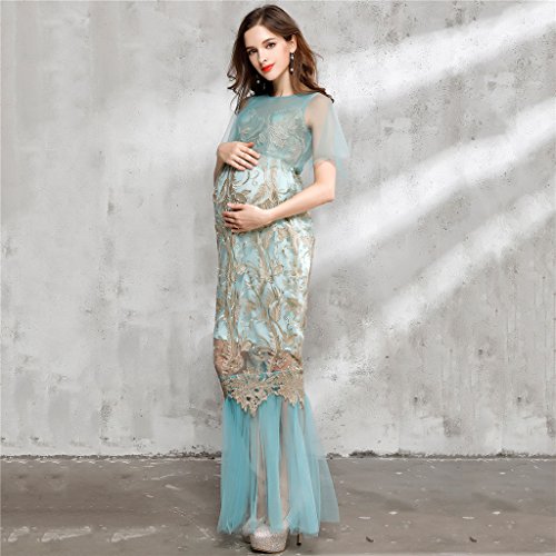 Homyl マタニティ写真衣装 ワンピース ドレス ガウン 半袖 透け 刺繍 妊娠姿を記念に 衣装 青