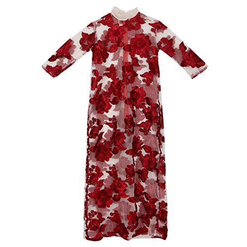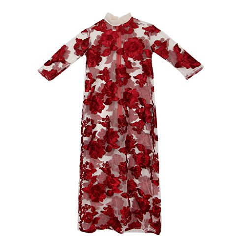 Homyl 妊娠婦 写真撮影用衣装 マタニティ ワンピース ドレス 長袖 花刺繍 透け メッシュ 豪華 赤