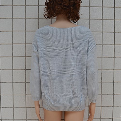Honel レディース ニットシャツ 大きサイズ 無地 長袖 ストラップレス お洒落 セーター グレー XL