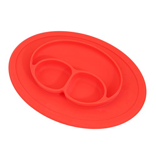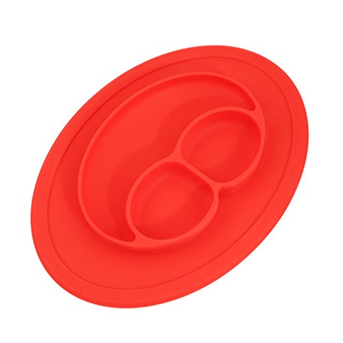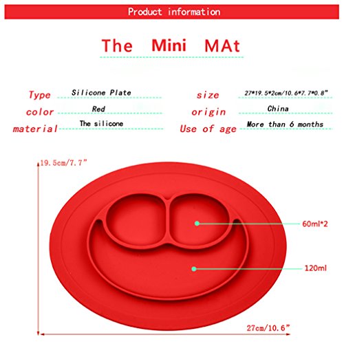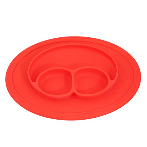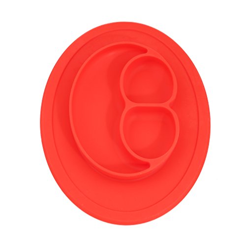 Honel お食事マット ランチョンマット ランチプレート シリコン 離乳食 ベビー食器 幼児 赤ちゃん 子供 キッズ ぴったり吸着 ひっくり返らないベビー食器 笑顔 レッド