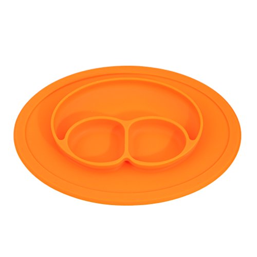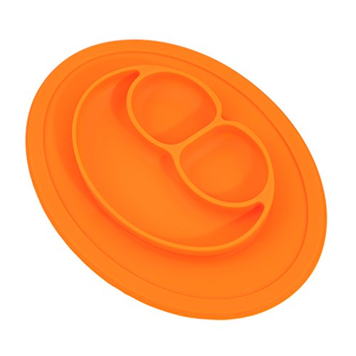 Honel お食事マット ランチョンマット ランチプレート シリコン 離乳食 ベビー食器 幼児 赤ちゃん 子供 キッズ ぴったり吸着 ひっくり返らないベビー食器 笑顔 オレンジ