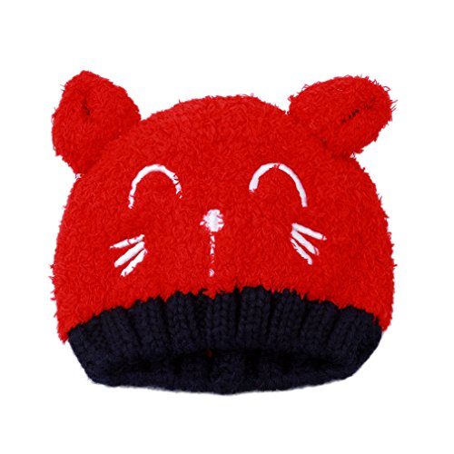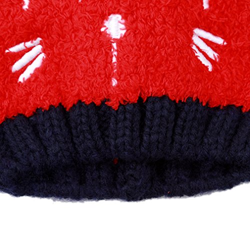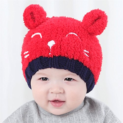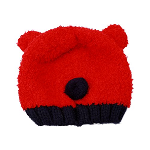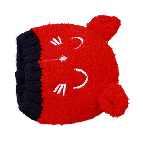 Honel ベビー キッズ 暖かい イヤーマフ 笑顔クマ 耳付き 帽子 スカーフ 2点セット 帽子 レッド