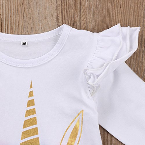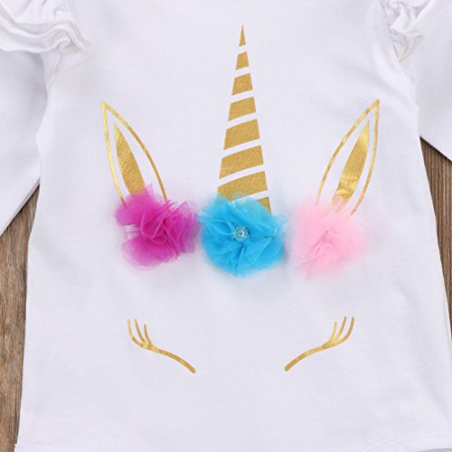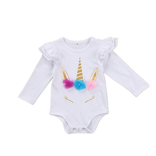 Honel 可愛い ベビー服 フラワー ユニコーン ロゴ ガールズ 子供服 出産祝い 春秋 娘着物 長袖 カバーオール ホワイト 70cm
