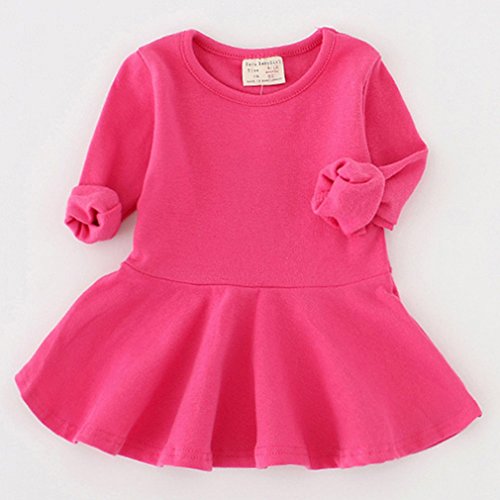 Honel 女の子 ワンピース チュニック ベビー服 かわいい 通園 通学 キッズ 子供服 ガールズ ドレス シンプル 春 秋 冬(ローズレッド、96cm)