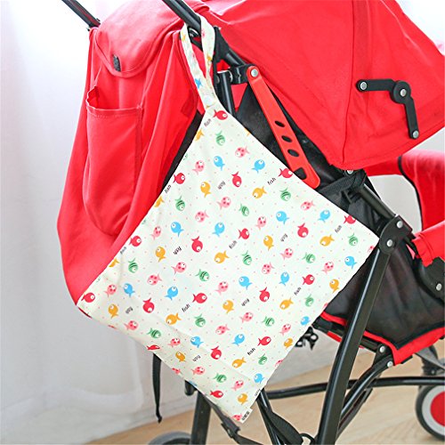 Honel ベビーカー用 防水バッグ 防滴 ポケット 多機能小物入れ 可愛い おむつ吊り袋 魚